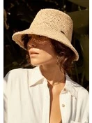 The Ellee is a versatile, packable bucket hat cast in crochet raffia straw. Lightweight, breathable and ready to travel, it’s finished with an all-around brim and custom metal plaque.