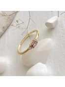 This beautiful light pink coloured baguette is flanked by two round clear crystal stones to accentuate the sparkle of this classically beautiful ring. It works so well on it’s own, or stacked with your other favourite styles.