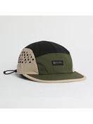 Made of a lightweight microfiber brushed polyester (similar to a boardshort) with perforations at side and back for breathability. With ultra cush moisture-wicking sweatband and adjustable snapback closure.