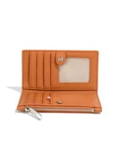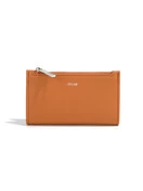 This slim wallet has 8 card holders, and a top zipper – it’s pure and made in soft textured vegan leather.