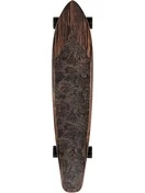 It is a Mellow concave with kicktail made of Ebony wood + Resin-8 hard rock maple. It features 150mm Slant reverse kingpin trucks and 70mm 83a wheels. Clear broadcast grip. Fabric inlay.