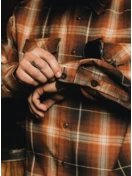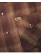 - Men’s brown and tan plaid patterned long sleeve bamboo shirt