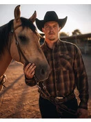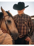 Constructed with an easy fluid fabric, this durable snap button was designed for a lightweight and breathable wear that keeps you cool while shielding you from the sun on the open road. Featuring an allover brown and tan plaid pattern with a high-end finish and generous length for a perfect lay, the Wyatt is set to become the top that you’ll find yourself reaching for time and time again.