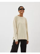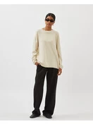 Masine 9759 is a long sleeved knitted shirt with a discrete melange effect. The shirt is crafted from organic cotton and linen for a light and comfortable quality. It has a loose fit and features crew neck, dropped shoulders and rib edges.
