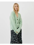 It has a regular fit and features v-neck, horn buttons at the front and rib details. The model is 175 cm tall and wears a size small.