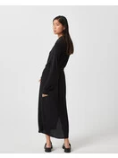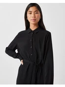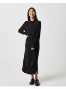 Nirra 212 is a midi length dress crafted from 100% lenzing™ecovero™viscose for a soft and comfortable quality. The dress has a regular fit and features slit along the sides, cuffs and a belt at the waist. The model is 176 cm tall and wears a size 36.