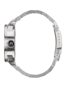 - Tapered, custom, solid stainless steel 3-link bracelet with double locking clasp and micro-adjust gives you a precise fit for all-day comfort.
