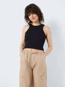 This Noisy May Cropped Tank Top in Black is the perfect addition to any summer wardrobe. The lightweight and breathable fabric make it perfect for hot days, while the cropped length and relaxed fit make it versatile for any occasion.