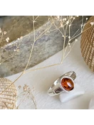 This gorgeous oval shaped Baltic Amber stone is set firmly into the simple sterling silver band. We love the natural beauty in this everyday wear ring.