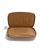 This tri-fold zip-around medium wallet has 10 card slots, room for your cash, and a back coin zip.