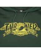 Thrasher midweight, cotton/poly blend hooded fleece sweatshirt in forrest green featuring custom Anti Hero / Thrasher mash up artwork screen printed graphic on chest front with custom labeling and details. Unisex. Fits true to size.