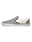 Featuring the iconic Vans checkerboard print, the Classic Slip-On is an everyday essential with true “Off The Wall” style. This slip-on shoe also includes low profile canvas uppers, supportive padded collars, elastic side accents, and signature rubber waffle outsoles.