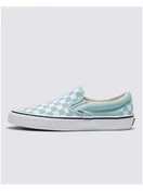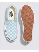 Featuring Van’s signature checkerboard print, the Color Theory Checkerboard Classic Slip-On honors Van’s legendary slip-on shoe with eye-catching colorways ideal for the season. This timeless style also includes low profile canvas uppers, supportive padded collars, elastic side accents, and signature rubber waffle outsoles.