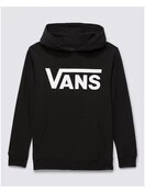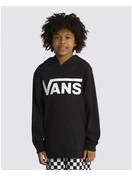 The Kids Classic Pullover Hoodie is a hooded sweatshirt with a front pouch pocket and classic Vans logo graphic printed on the chest.