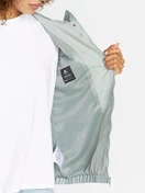 This lightweight wind breaker style is a hooded zip front style with snap front closure and mesh lining plus a 1000mm coated taffeta exterior. Model is wearing size small.